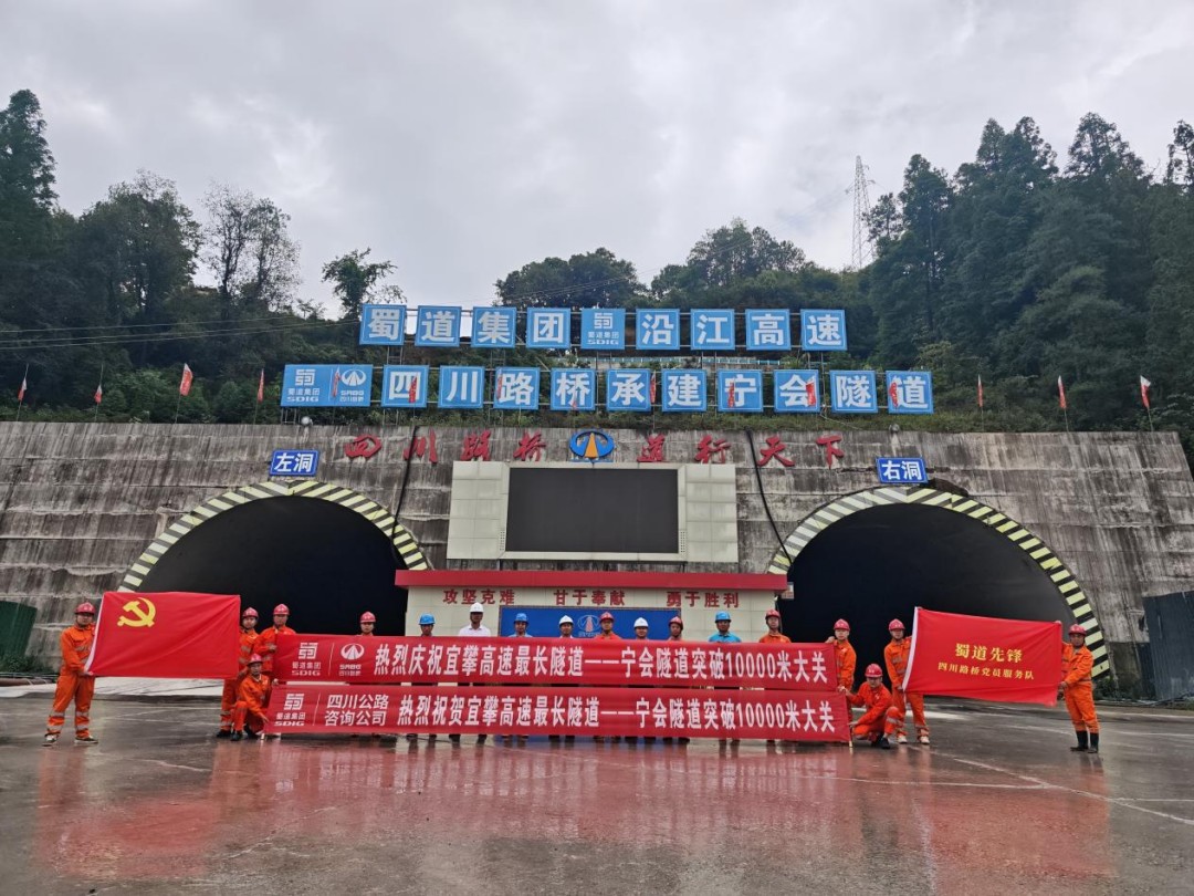 6月19日,宜攀高速最长隧道——宁会隧道左线累计进尺突破10000米大关,标志着全长10299米的超级隧道建设取得阶段性胜利。