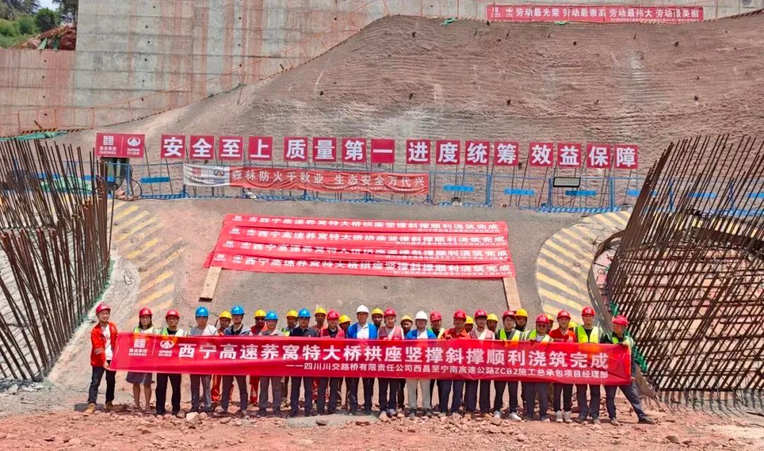 6月14日,西昌至宁南高速公路荞窝特大桥4根47.7度超大斜率斜撑顺利完成浇筑,标志着荞窝特大桥建设取得重大突破,竖撑、斜撑施工全部顺利完成,进入拱座施工阶段。