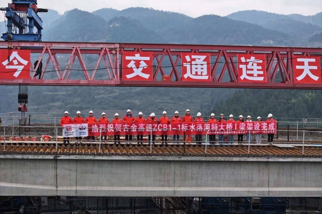12月18日,随着架梁机上最后一片预制梁稳稳落下,古金高速水落河特大桥预制梁全部顺利架设完成,为古金高速全线建成通车奠定坚实基础。