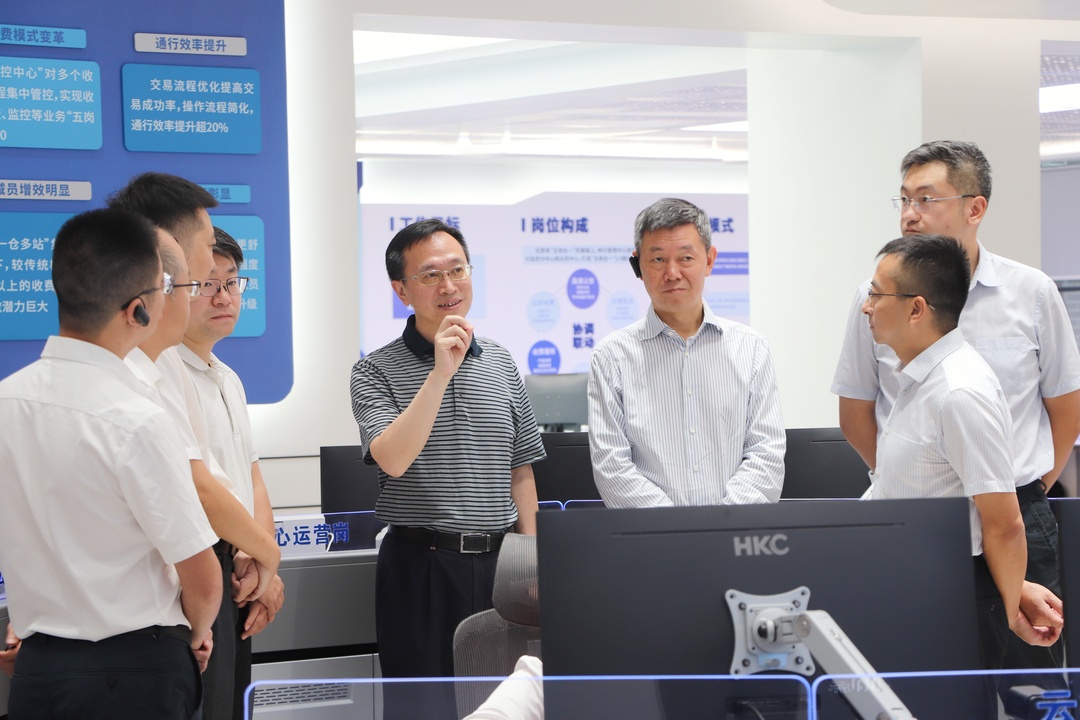 在泸渝公司特兴云控中心,黄兵听取了泸渝公司新一代“智慧云仓”试点工作进展的报告,详细了解新一代“智慧云仓”试运行情况,对现阶段成效表示肯定。他强调,要严格落实蜀道集团党委副书记、副董事长、总经理张胜对智慧云仓“及时总结、全面推广”的工作指示,并重点询问了新收费模式下优免车辆查验方式的调整、新系统稳定性与实际表现、新旧模式对比优势,以及云控人员对新模式的适应情况,并对下一步试点推进工作提出指导意见。