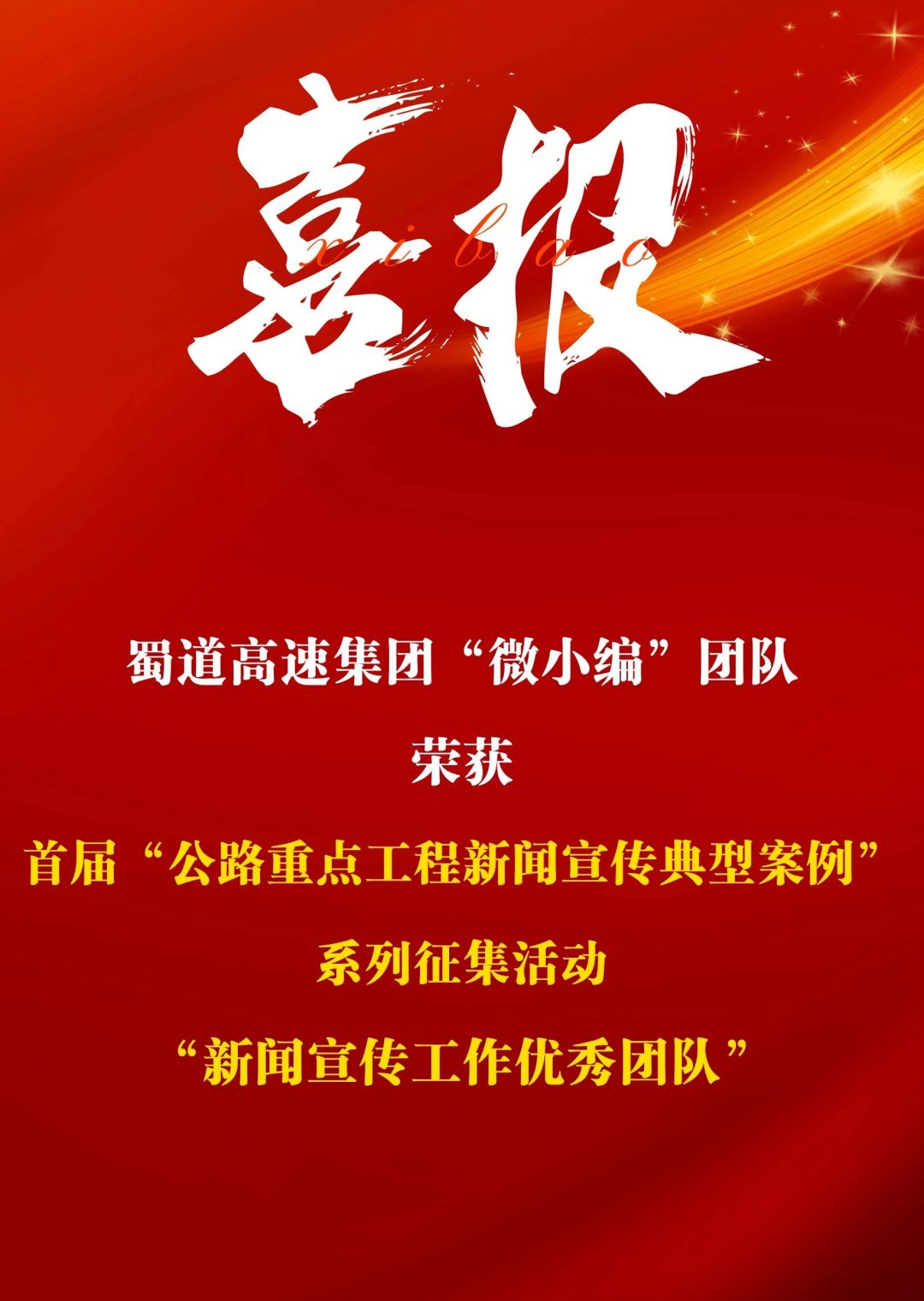 近日,在《中国公路》杂志社主办的首届“公路重点工程新闻宣传典型案例”系列征集活动中,williamhill英国官网集团“微小编”团队荣获“新闻宣传工作优秀团队”!