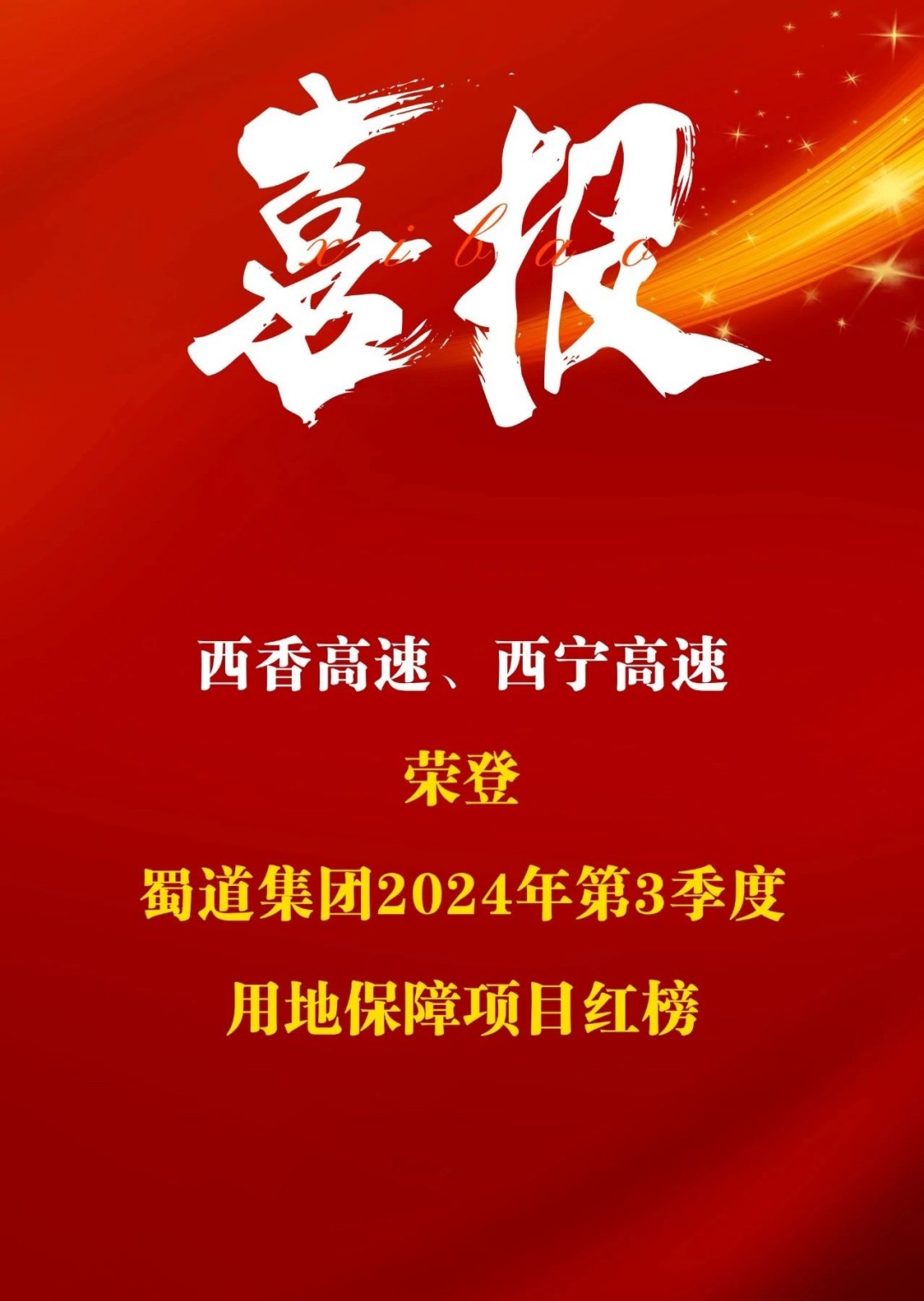 10月31日,蜀道集团印发《关于在建项目2024年第3季度征拆及用地保障工作情况的通报》(蜀道司办﹝2024﹞223号),在蜀道集团坚强领导和大力支持下,2024年3季度,williamhill英国官网集团所属在建项目征拆及用地保障工作推进良好,所属西香高速、西宁高速在征拆红线用地征拆比例及重大迁改事项中取得明显进展,并双双荣登用地保障项目红榜。此次williamhill英国官网集团所属西香高速、西宁高速同时荣登红榜,是对williamhill英国官网集团在建项目在征地拆迁和用地保障工作的充分肯定。