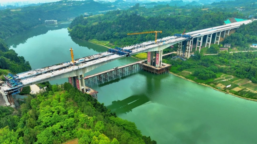 资中至铜梁高速杨柳滩沱江特大桥实景图