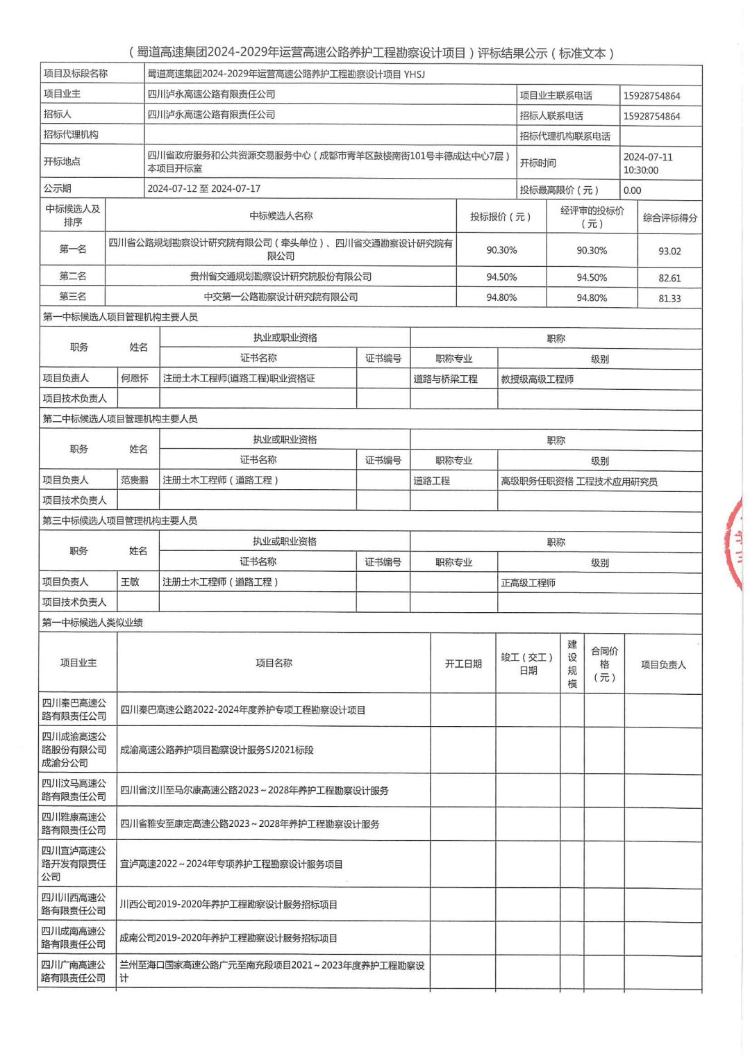 williamhill英国官网集团2024-2029年运营高速公路养护工程勘察设计项目评标结果公示.pdf