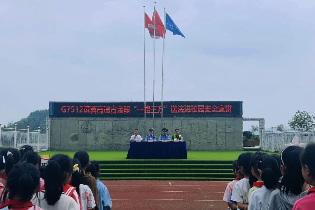 6月7日,川黔公司联合高速交警、高速执法在龙山镇中心小学校开展G7512筑蓉高速古金段“一路三方”送法进校园宣传活动,为师生详细讲解交通安全基本常识和事故预防知识,提倡文明出行、不在高速公路旁停留打闹等,进一步加强高速沿线师生的道路交通安全意识与法制观念。