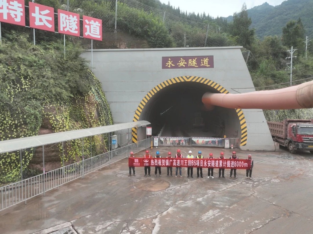 10月6日,镇广高速川王段B5项目永安特长隧道双洞累计掘进突破8000米大关,标志项目工程建设取得重大进展,为项目完成全年生产建设目标打下坚实基础。
