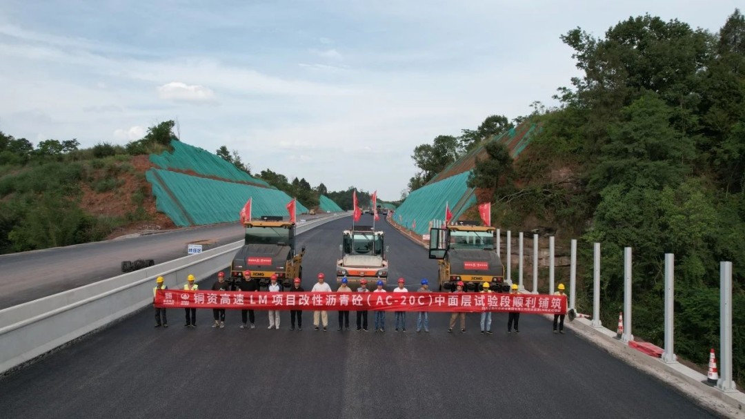 5月25日,铜资高速LM项目沥青混凝土(AC-20C)中面层试验段顺利完成铺筑,标志着铜资高速路面施工进入全面加速阶段,为实现全线通车目标打下坚实基础。