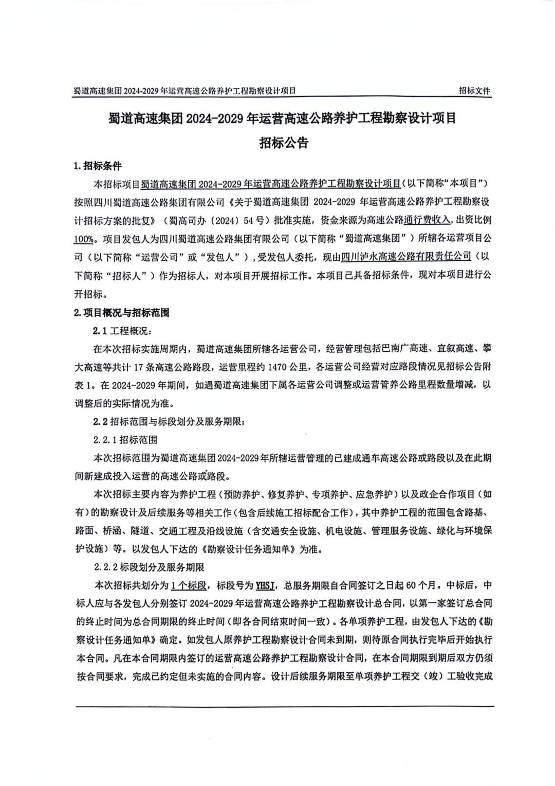 williamhill英国官网集团2024-2029年运营高速公路养护工程勘察设计项目招标文件.pdf