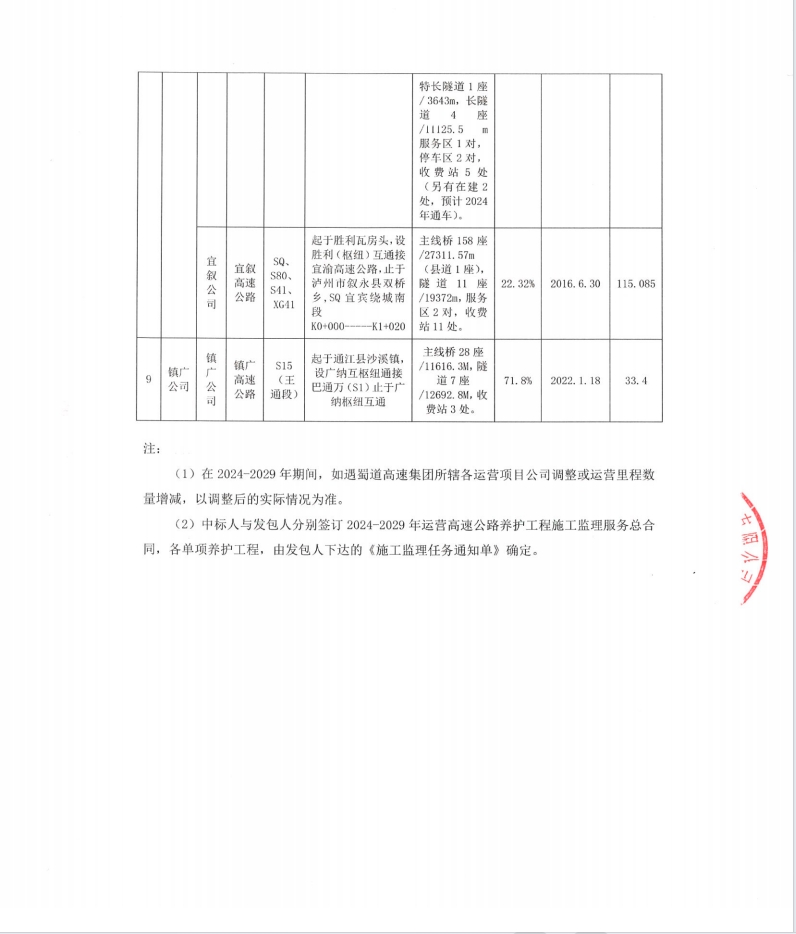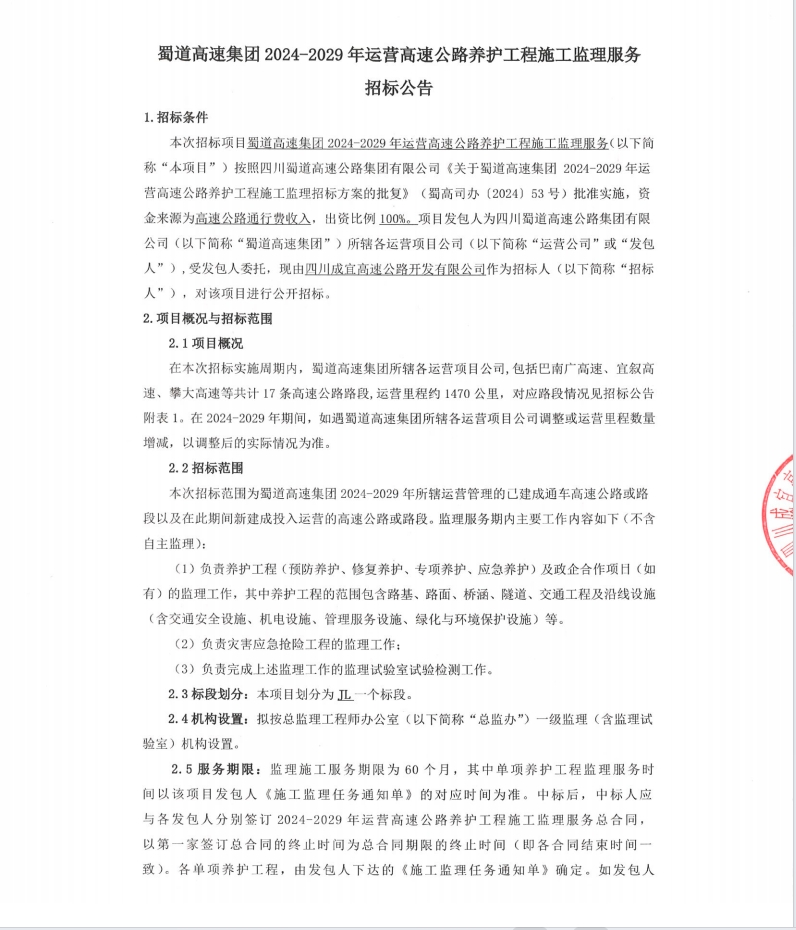 williamhill英国官网集团2024-2029年运营高速公路养护工程施工监理服务招标公告