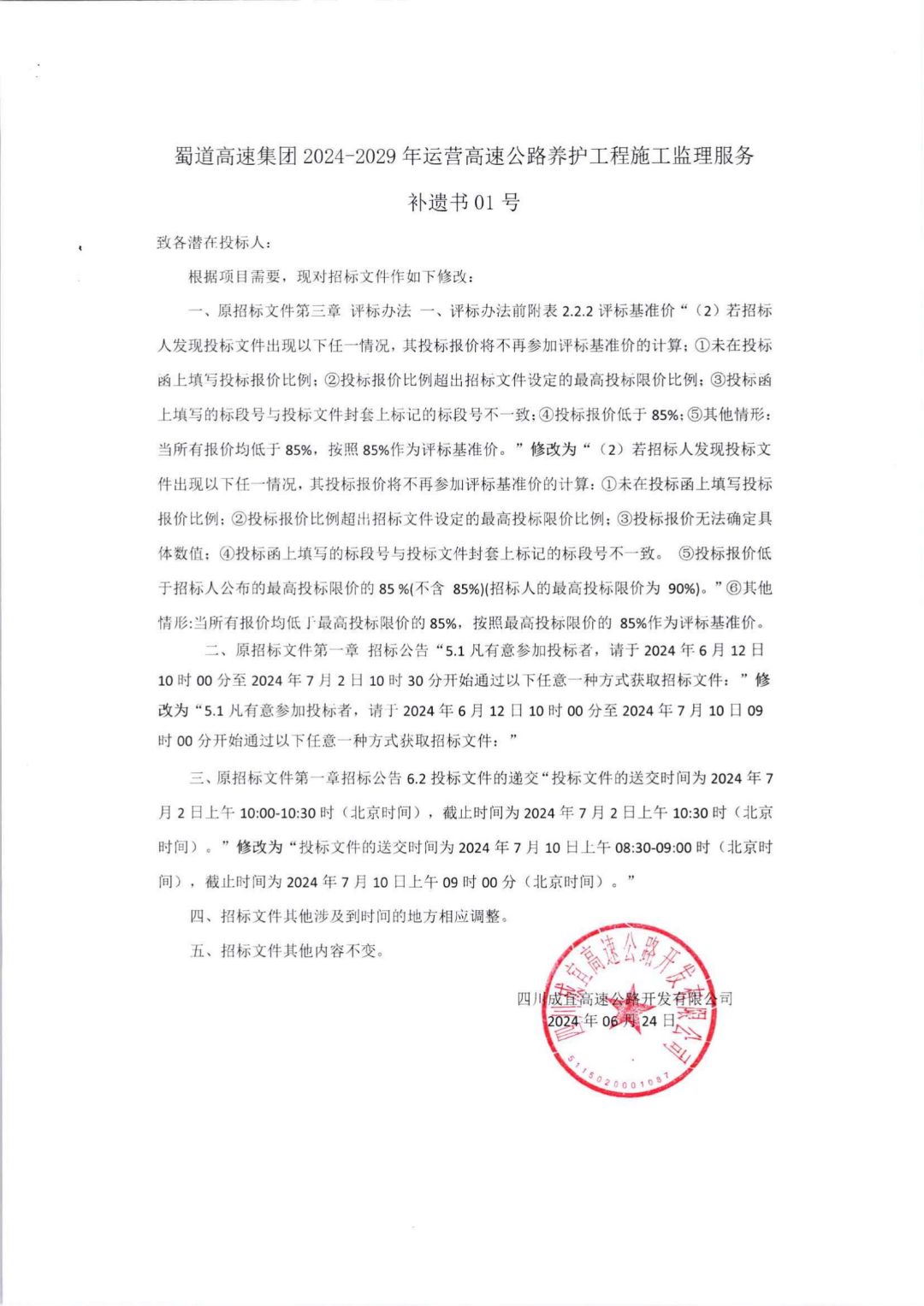 williamhill英国官网集团2024-2029年运营高速公路养护工程施工监理服务补遗书01号