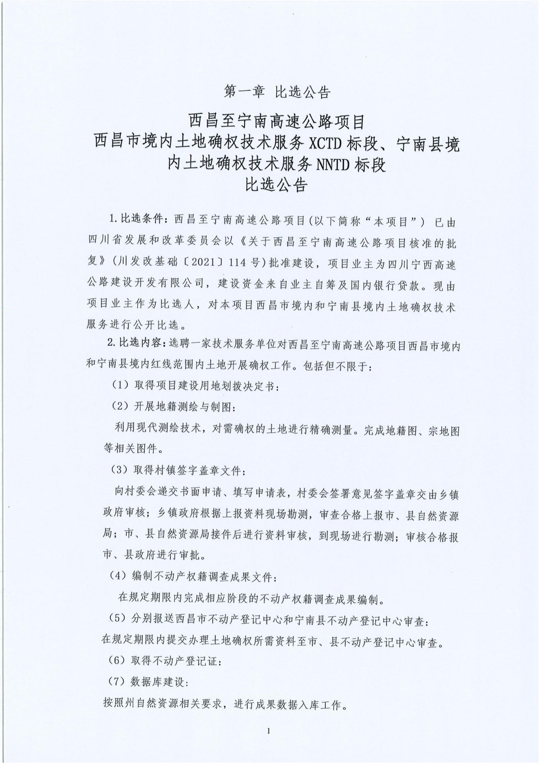 西昌至宁南高速公路项目西昌市境内土地确权技术服务XCTD标段、宁南县境内土地确权技术服务NNTD标段比选公告.pdf